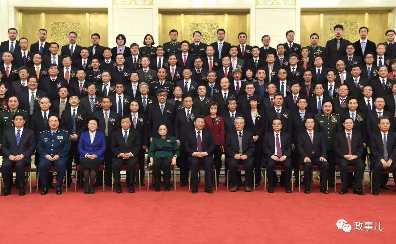 1月9日,2016年度国家科学技术奖励大会在人民大会堂举行。会前,习近平等党和国家领导人会见获奖代表并合影。