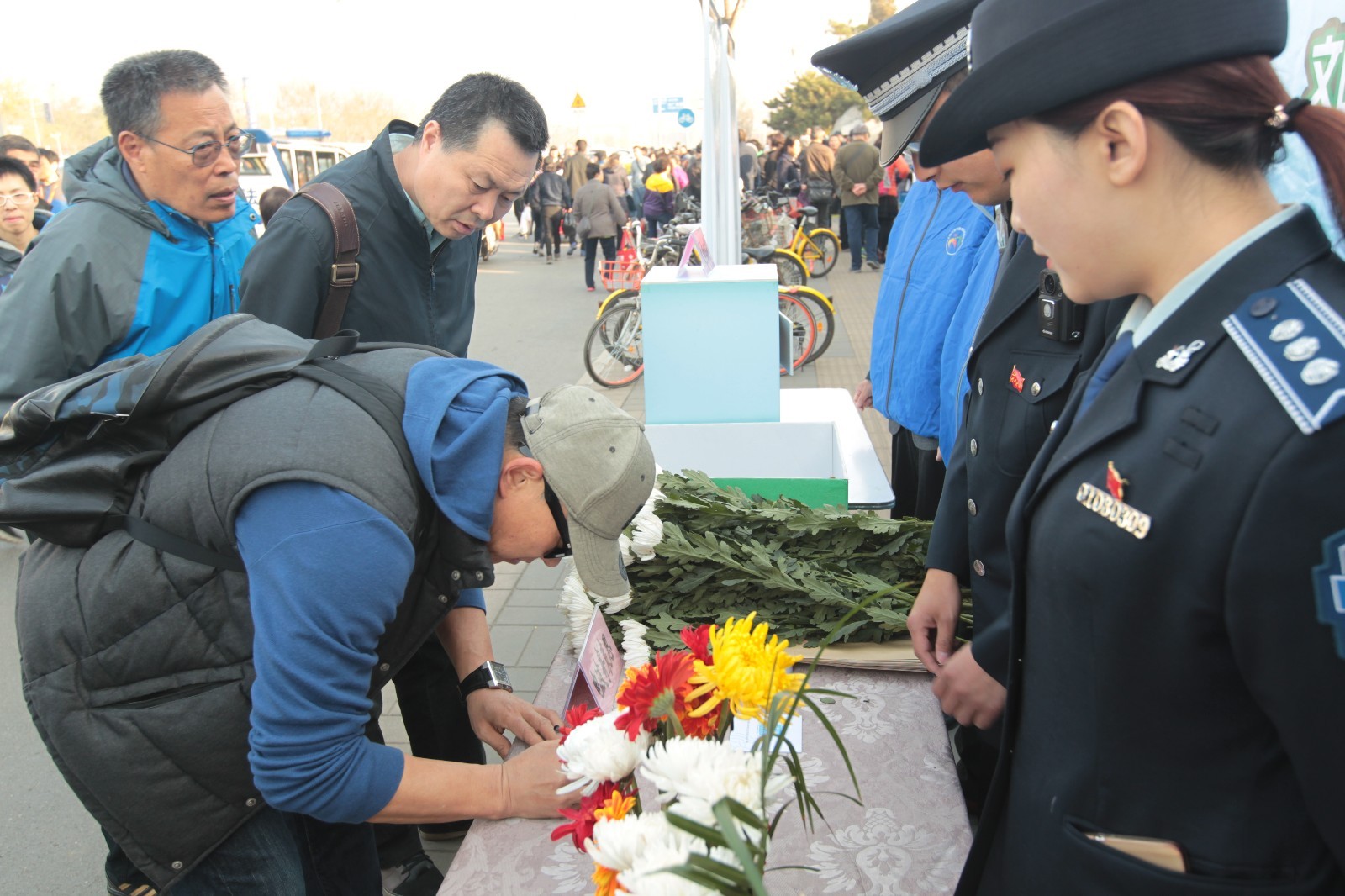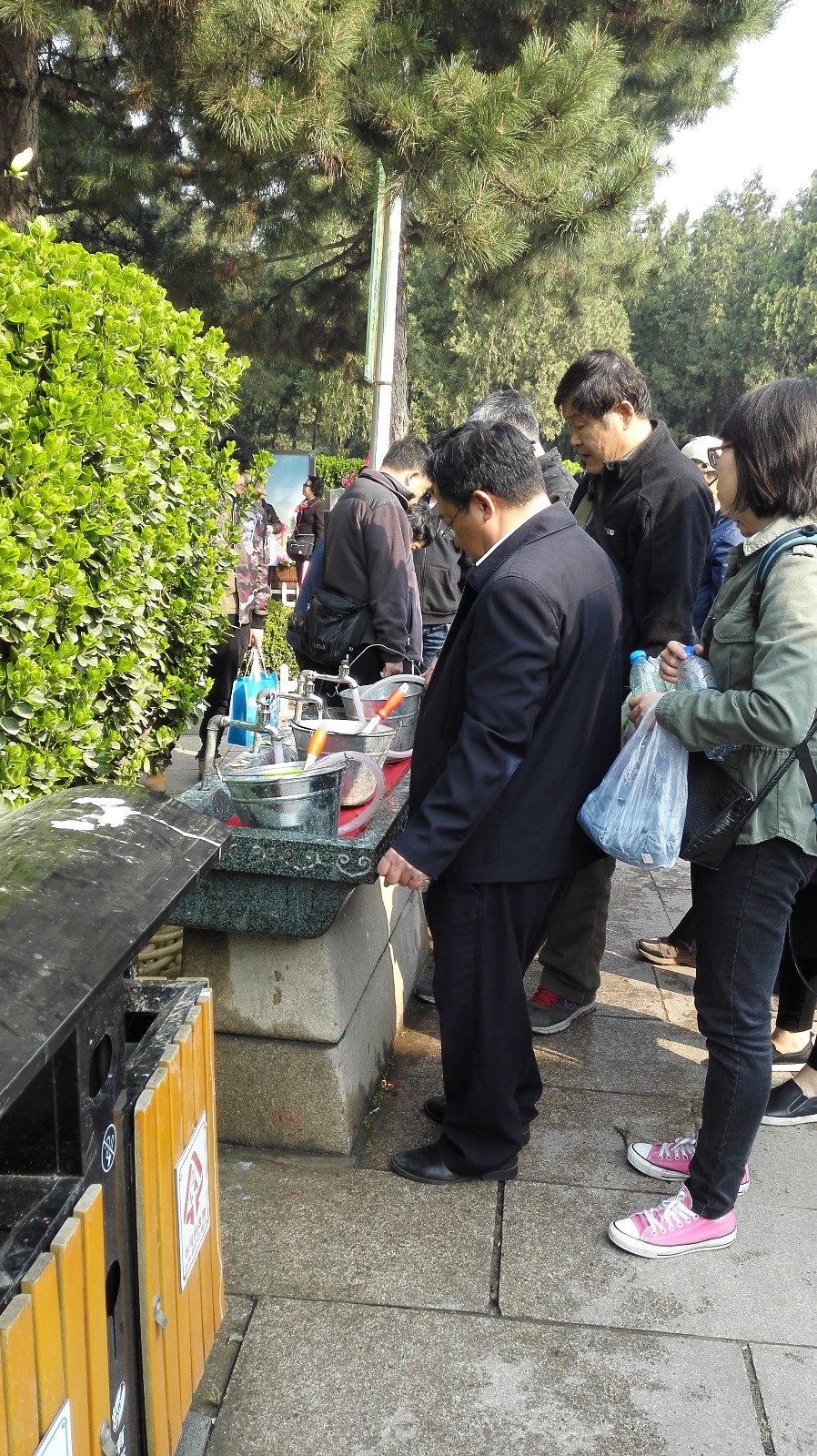 与此同时,石景山城管执法人员还在现场免费为市民发放水桶等祭扫清洁用品,在墓区内的各个接水点都排起了长龙。