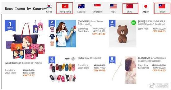 但其全球版网页的“各国最热销售产品”的选项却是这样↓