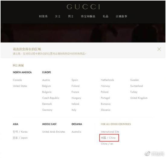 最标准的还要属路易威登(LV),其官网在“位置选择”中清晰写明了:中国大陆、香港和台湾地区↓