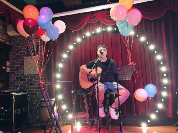 在酒吧驻唱的唐糖。受访者供图。