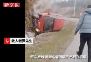 夫妻带头砸窗救出车祸被困司机 路人合力救援成功