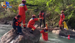 茶农因溪水暴涨被困 消防搭梯桥实施救援
