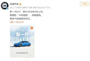 新一代小米SU7预计2026年4月上市