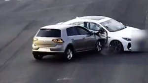 两车路口相撞女子幸运躲过一劫