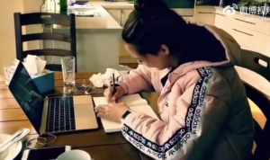 谷爱凌一边写作业一边和妈妈斗嘴