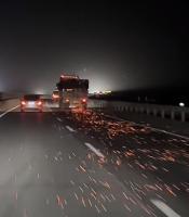 一路火花闪电运煤车甘肃酒泉段起火 小伙返乡过年路上冒险“逼停”