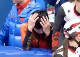 王濛现场观战速滑混接 看得快哭了 林孝埈场边长时间低头抱着脸