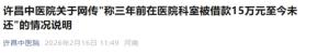 医院通报尿毒症患者被借款15万 医院回应合作公司债务纠纷