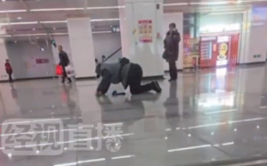 保洁员跪着擦地引网友心疼 地铁回应:系偶发事件,不建议乘客站内饮食