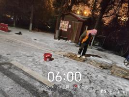 武汉园林工人清晨公园忙扫雪