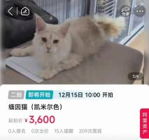 替主人还债的宠物猫降至3600元起拍 缅因猫二次拍卖待新主