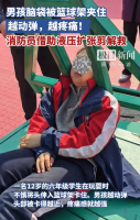男孩脑袋被篮球架夹住 消防员救援