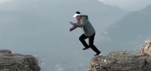 多名男子在野山上跳过近3米远高崖 网友担忧安全问题