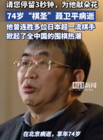聂卫平对中国围棋作出奠基性贡献 曾连胜日本超一流棋手