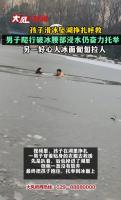 孩子滑冰坠湖 男子爬行破冰救人 英勇行为温暖寒冬
