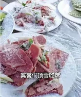 30桌人雪天室外吃席先上8个凉菜