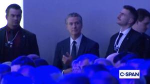 特朗普台上演讲纽森台下苦笑