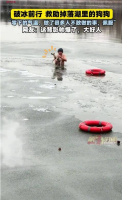 男子破冰前行救助掉落湖里的狗狗