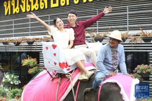泰国芭堤雅:象背上的集体婚礼 9对情侣喜结连理