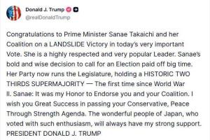 日本众议院选举结果出炉特朗普表态 祝贺执政联盟胜选