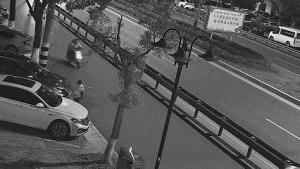 孩子玩滑轮车下坡看得人心惊胆战