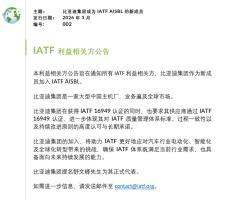 比亚迪成为IATFAISBL新成员