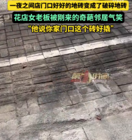 女子店铺门前地砖被邻居偷换成碎砖