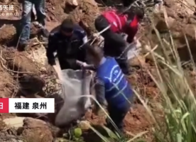 福建安溪修河堤震出三条大蟒蛇 最重达五十多斤长约4米