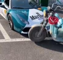 大爷骑车撞法拉利掏163元和4颗菜赔偿