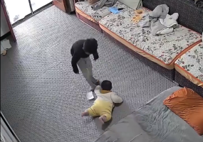 男孩谨遵妈妈嘱托 不管去哪都拖着妹妹