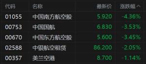 港股机场航空概念股走低 民航市场进入淡季周期