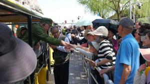 老人乘车进景区游客不吐槽反而欢迎