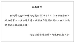 何超蕸去世终年60岁 家族与社会痛失英才