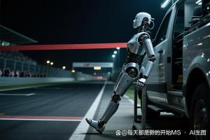 机器人冲线后坐车休息脚搭车架上 傲娇姿态引围观