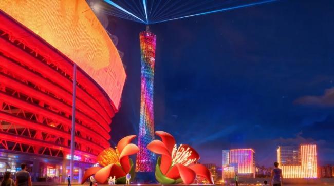 为迎接第十五届全运会,10月29日“广州之夜”活动期间,广州塔上演了一场90秒的全运会主题灯光片段首秀