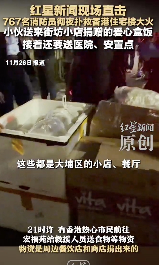 11月27日约6时,香港消防处在记者会上透露,截至目前已累计处理100名伤者,其中40名伤者在现场不幸死亡,4名伤者送院后不治,另有45名伤者情况严重。事件中共有1名消防人员不幸殉职,7名消防处人员受伤,目前他们的情况稳定。热心香港市民逸朗告诉南都N视频记者,香港义工等通宵处理各界团体及热心市民捐赠过来的物资,现场形成多条搬运“长龙”。