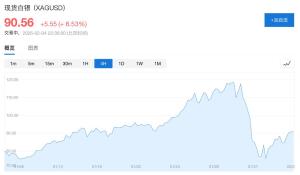 现货白银向上触及90美元