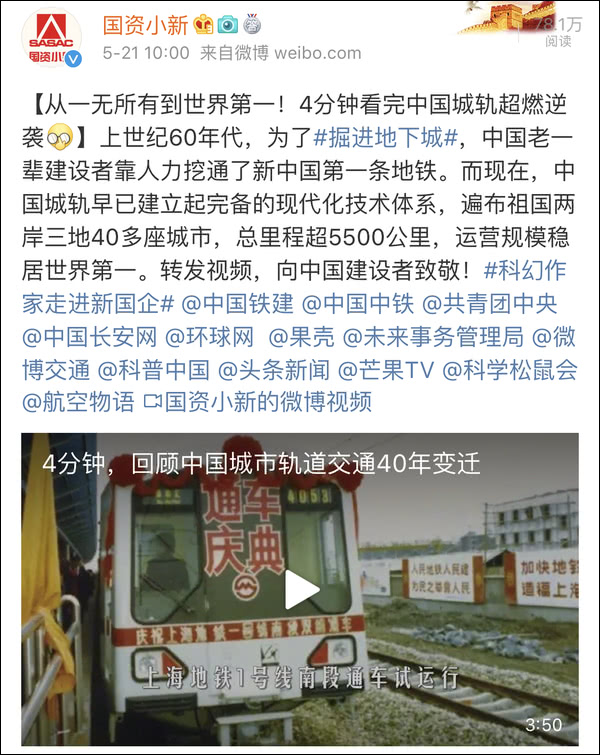 @国资小新今天分享的这段视频,讲述了40年来中国城轨的发展巨变,短短4分钟,却看得人是心潮澎湃。